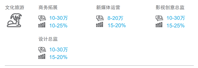 文旅产业蓬勃开展是必然趋势,对于商务拓展、新媒体运营、影视创意总监、设计总监的需求增加。
